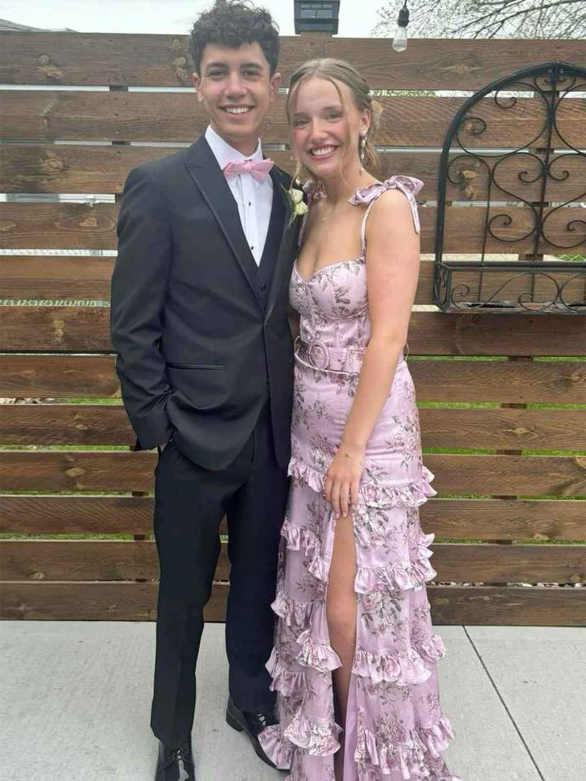 Straps Print Sleeveless Ruffles Prom Dress with Slit
